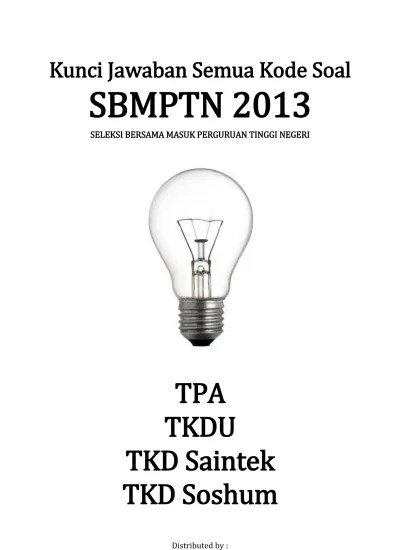 Arsip lengkap soal dan kunci jawaban sbmptn 2018 2009 selamat pagi kawan yang sedang mempersiapkan diri untuk sbmptn 2016. Tes kemampuan dasar tkd saintek. Download soal, kunci jawaban sbmptn 2014 tkpa, tkd … Soal sbmptn 2014 soshum kode 773. View kunci jawaban bahasa inggris sbmptn 232 gif.